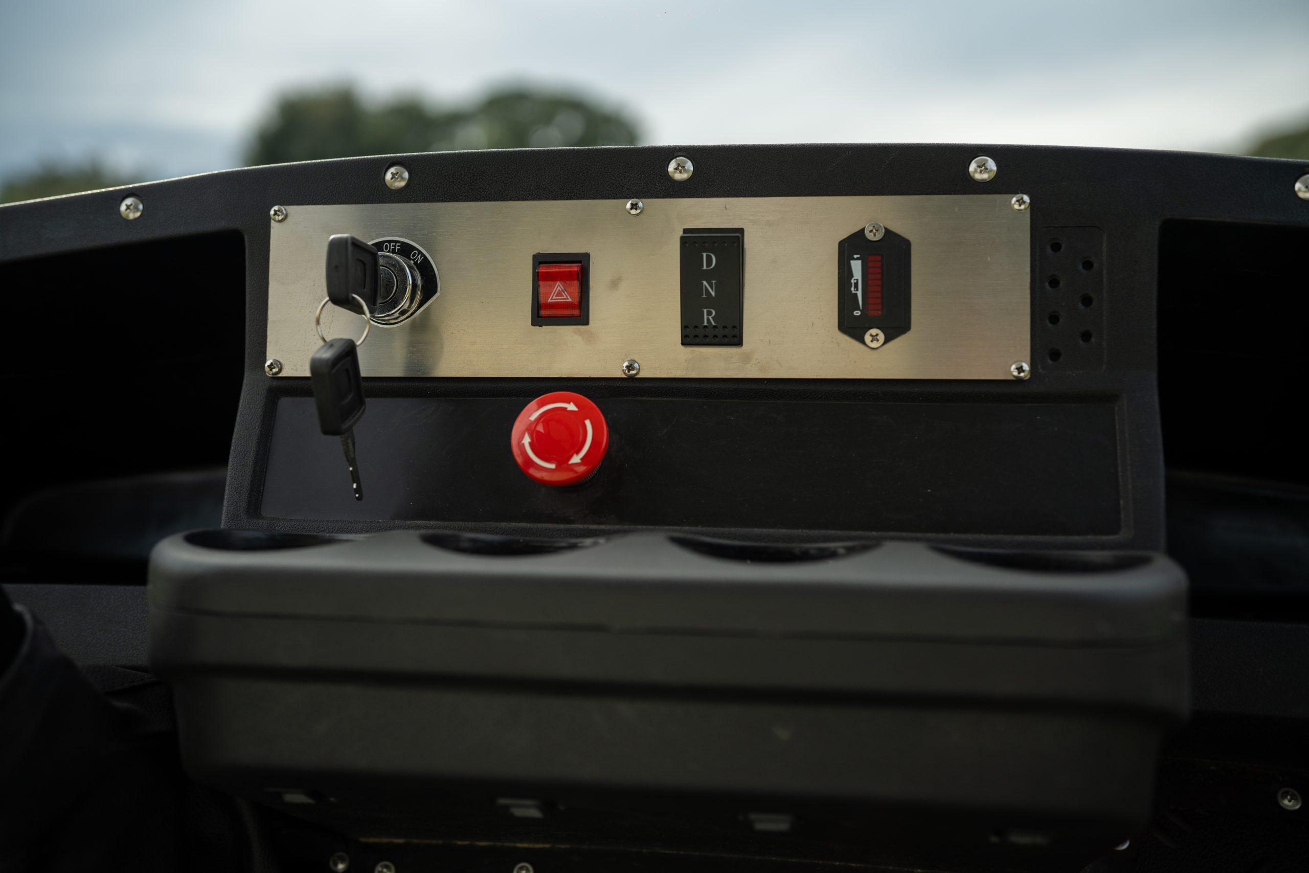 Ogni dettaglio è progettato per offrire comfort e affidabilità. Il motore elettrico da 4 kW assicura una guida fluida e silenziosa, mentre la batteria al piombo da 48V 100Ah garantisce un’autonomia generosa, perfetta per affrontare un’intera giornata di attività senza interruzioni. Il parabrezza integrale protegge da vento e polvere, l’illuminazione full LED assicura visibilità in ogni condizione e i sedili rivestiti in pelle e materiale impermeabile HRF PU offrono comfort e resistenza anche negli ambienti più esposti.