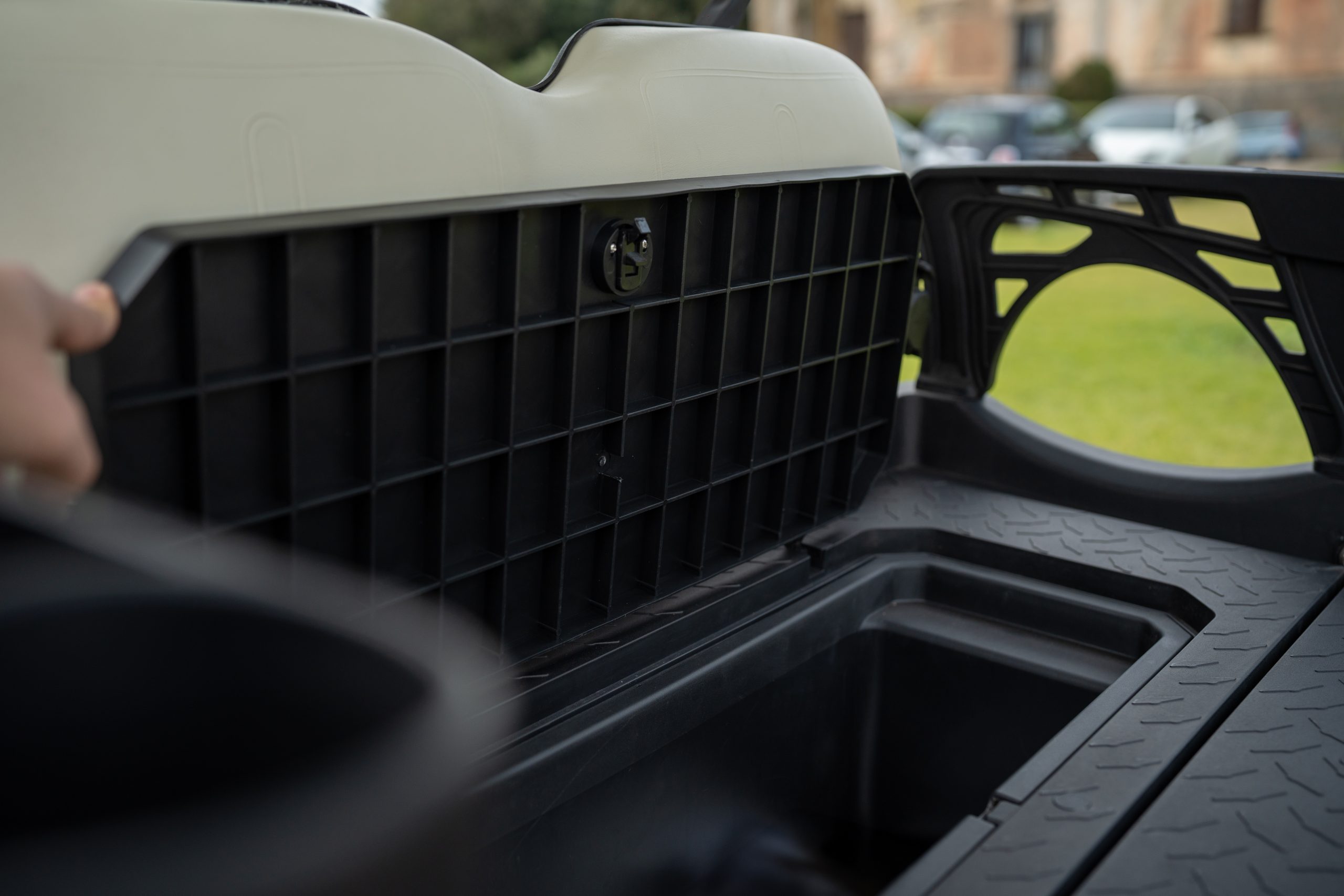 I sedili posteriori ribaltabili permettono di trasformare l’area passeggeri in un vano posteriore apribile, utile per carichi leggeri. Il rivestimento in pelle e materiale impermeabile HRF PU garantisce comfort e resistenza, anche in ambienti esterni. Una soluzione pratica e versatile, pensata per chi cerca funzionalità essenziale.