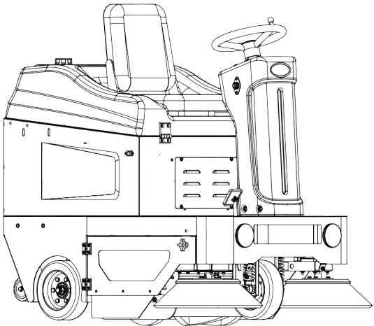 Il vano polvere integrato consente uno svuotamento rapido e sicuro, mentre il dispositivo di vibrazione del filtro mantiene costante l’efficienza di aspirazione. La batteria al piombo-acido da 48V, esente da manutenzione, assicura autonomia e affidabilità, con allarme automatico in caso di bassa tensione.